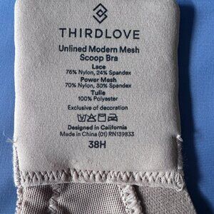 This is a brand new unworn or tried on ThirdLove Unlined Modern Mesh Scoop Lace Bra in 38H in Nude. Tags are still attached, tissue paper still covers the hooks.