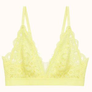 NWT Thirdlove Yellow Lace Bralette 1X Plunge Sexy Floral Mesh See Through Yellow