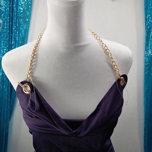 Elevate your party style with this stunning and sexy tube top from Thirty Thirty. The cowl neck with gold chain strap adds a touch of sophistication to this purple top, which is perfect for summer and spring. The lightweight and stretchy fabric made from polyester and spandex ensures a comfortable fit and easy movement while you dance the night away at the club.