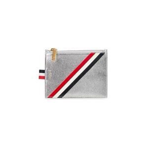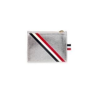 NWT Thom Browne Silver Metallic Pebble Grain Leather Pouch