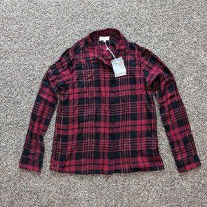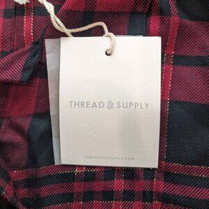 NWT Thread And Supply Button Down Plaid Shirt Size Medium Red Black and Gold