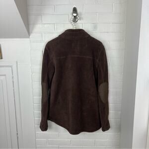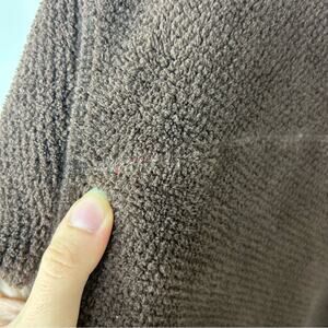 New with tags attached. Super cozy and comfy faux Sherpa soft like material. Front kangaroo pocket. Elbow patch detail. Chocolate brown color. Snap button collar. Runs a little big. Please note there was a small bit of red thread that got sewn in during manufacturing. Shown in above photos. All sales final.