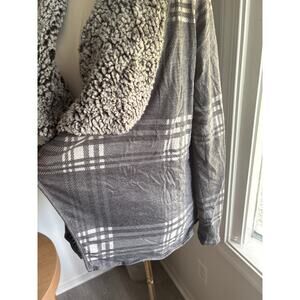 NWT Thread & Supply Plaid Sherpa Cardigan Sweater Size XS Gray Windowpane