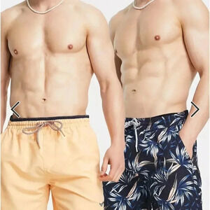 NWT Threadbare 2-Pack Men's Swim Shorts | Coral & Tropical Print | Fits Like M