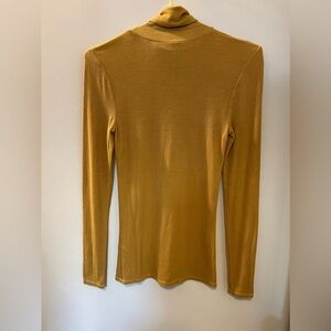 Stylish mustard yellow ribbed turtleneck long sleeve top. Perfect for layering. Soft and comfortable fabric. Basic essentials + timeless brand!