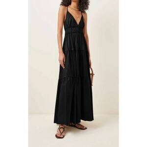 NWT Three Graces London Black 100% Silk Chloe Tiered Maxi Dress Womens 8 / US 4