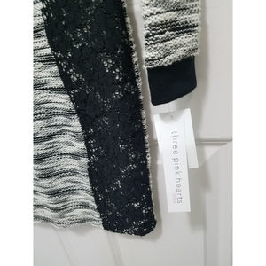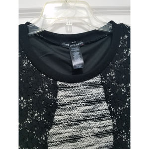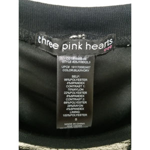 NWT Three Pink Hearts Black Gray Lined Scoop Neck Long Sleeve Pencil Cut Sz S