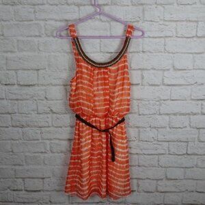 Three Pink Hearts Dress Party Cocktail Prom Belted Stripes Juniors Small NWT $58