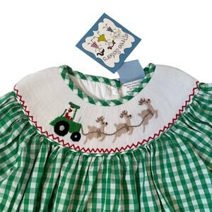 #twinsisters #santa #tractor #whimsical #green #gingham #smocked #bishop #check #reindeer #animals #new #nwt #giftit #CHRISTMAS