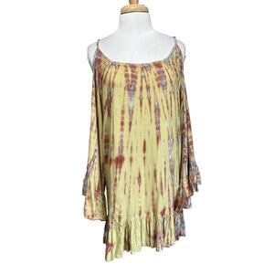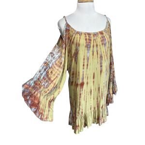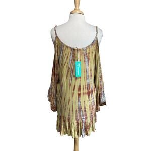 NWT Tiare Hawaii Dress Tunic Free Spirit Chartreuse Boho Tie Dye