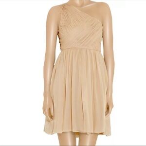 NWT Tibi 100% Silk Chiffon One Shoulder Dress Nude Beige Size 4