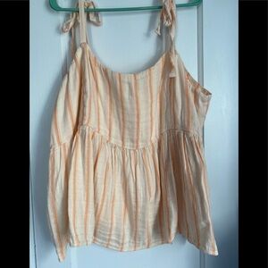 NWT- Tie-Shoulder Striped Smocked Babydoll Cami Swing Blouse, Size: XXL