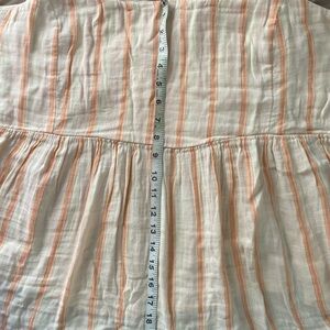 Seamed empire waist, with babydoll hem. Softly-washed, crinkled 100% cotton, with all-over stripe
