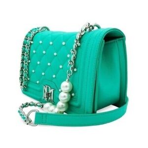 NWT Tiffany Blue Crossbody Purse w/Metal and Pearl Strap