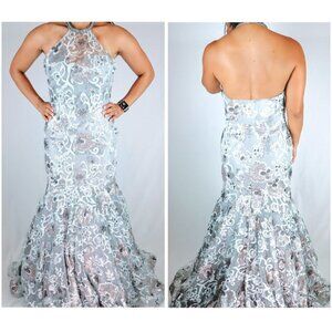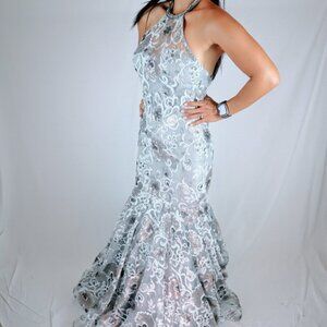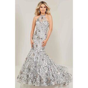 NWT Tiffany Designs Silver Floral Sequin Formal Gown $665