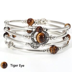 NWT - Tigers Eye Natural Stone Multi Layer Bangle Bracelet
