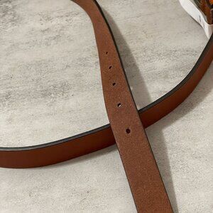 NWT Timberland Brown All Leather Brass Square Buckle 1" Wide Waist Belt Unisex XL Made in India