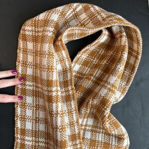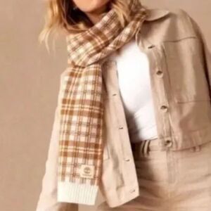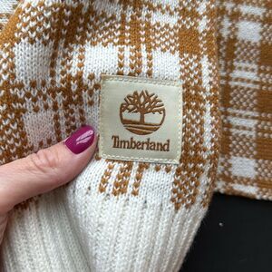 NWT Timberland Buffalo Plaid Knit Scarf Cozy Logo Checkered Tan Cream