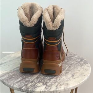 Stylish brown and black boots with fur lining. Perfect for cold weather.