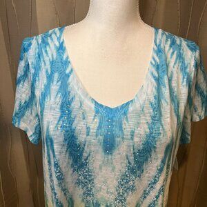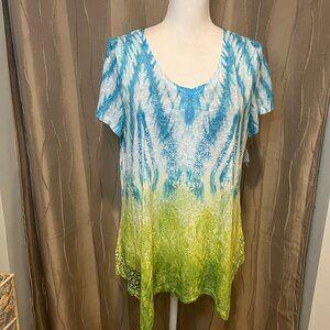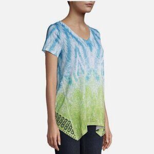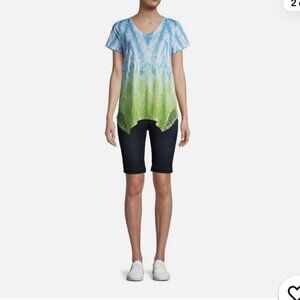 NWT Time And Tru Blue & Green Short Sleeve Sharkbite hem Tee, Size L (12-14)