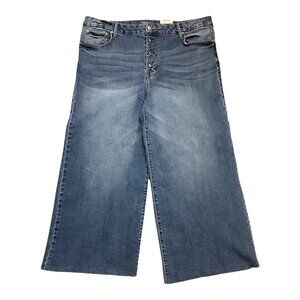 NWT Time And Tru Wide Leg Crop Blue Button Fly High Rise Jeans Womens Size 18