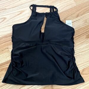 NWT Time & True Black Tankini Womens XL Key hole Rouched sides Beach Swim Top