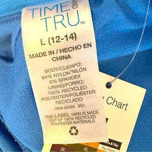 NWT Time and Tru Ladies Bikini Top Adjustable Straps Aqua Blue Size L (12-14)