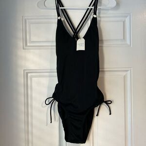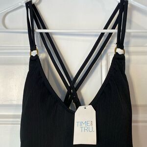 NWT Time and Tru Missy Side Shirred One Piece Black Size M