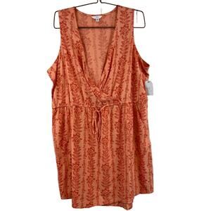 NWT Time and Tru Orange Sleeveless Surplice V-Neck Shirt Dress Plus Size 22 XXXL