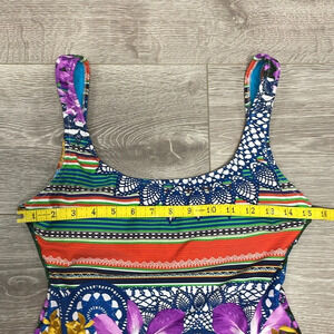 NWT TiniBikini One Piece Boho Floral Swimsuit in size S. Excellent new condition. Fully lined, removable pads. Multicolor print with stripes, tropical flowers, mandalas and parrot Please see photos for approximate measurements and details. Item may show difference in color based upon photography and perception. Photos are part of the description, as everyone’s level of condition may vary. From smoke free and pet free home. All packages are shipped the same or next business day.