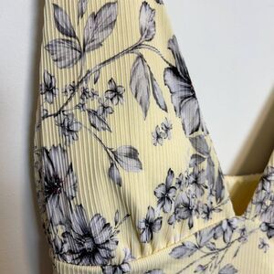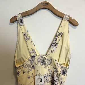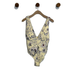 NWT Tinikikini Swim Wear Womens One-piece Swimsuit Size Large Pale Yellow Grey Padded Flower Deep V-neckline Print 6540SW