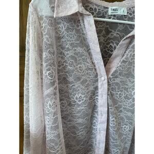 NWT Tinsel Women’s Pink Lace Sheer Long Sleeve Button Blouse Top Large Boho