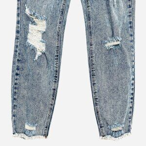 Tinseltown Women's The Mom Jeans High Rise Distressed Blue Stretch Jeans