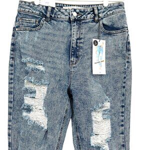 NWT Tinseltown Women's The Mom Jeans Size 13 High Rise Distressed Blue Stretch