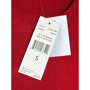 NWT Tint & Shadow Small Red Long Sleeve Scoop Neck Sweater Scoop Hem Button Acc