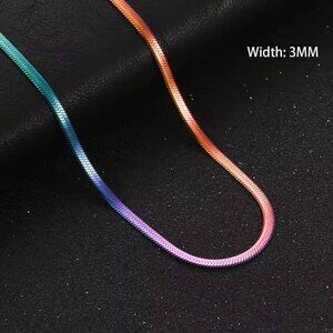 NWT Titanium Rainbow Stainless Steel 3mm Herringbone Snake Chain 18”