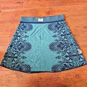 This is a new with tags reversible skirt by Title Nine. It has an elastic waistband and floral brocade print in shades of blue. There is no size tag on this skirt, please let me know if any additional measurements are needed!