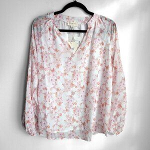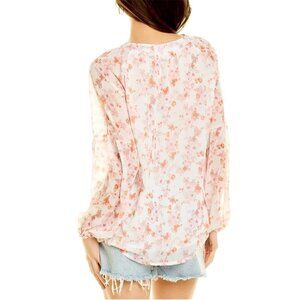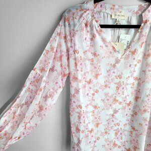 NWT To My Lovers Pink Floral Boho Sheer Puff Sleeves Peasant Top