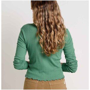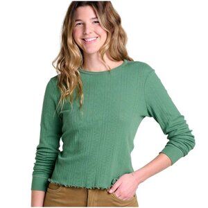NWT Toad & Co Foothill Pointelle Long Sleeve Crew t-shirt Ivy green L large top