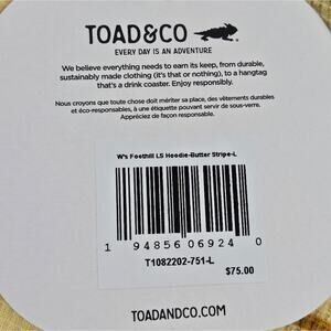 NWT Toad&Co Foothill Long-Sleeve Hoodie Size L