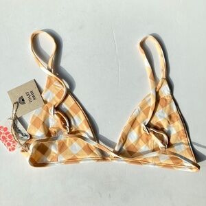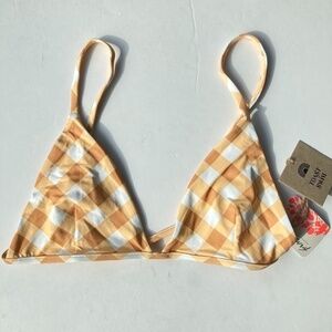NWT Toast Swim Signature Gingham Plaid Triangle Orange/White Bikini Top