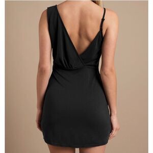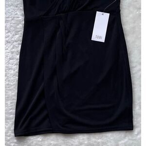 NWT Tobi Queen Elizabeth Asymmetrical Wrap Mini Dress in Black, Size Small