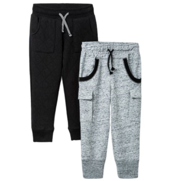 Whether headed for a fun family road trip or riding his bike in the backyard, your favorite guy will stay at his comfy best in the 2-Pack Jogger Pants from Cat and Jack™. Made from a breathable fabric for comfy wear, these toddler boys' mid-rise joggers feature banded cuffs to offer him a snug fit, while the full elastic waistband ensures they stay in place during all his little adventures. This jogger pants pack includes two pairs — one in black with diamond-stitch pattern and the other in heather gray — that coordinate with a variety of his tees, tanks, sweatshirts or zip-up hoodies for versatile casualwear options. Plus, they feature two side slit pockets and two side flap pockets to give him space for carrying his knickknacks.