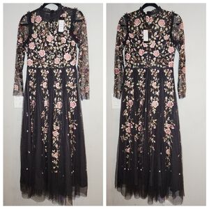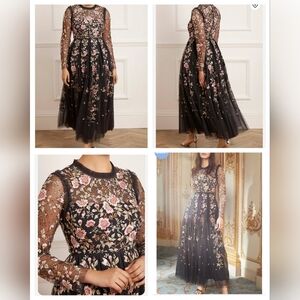 NWT Tolani Embroidered Black Tulle Sheer Maxi Dress Size Small Petite
