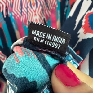 As featured in InStyle Magazine, this piece embodies effortless boho-chic with vibrant global-inspired prints in rich tones of pink, navy, orange, and turquoise.