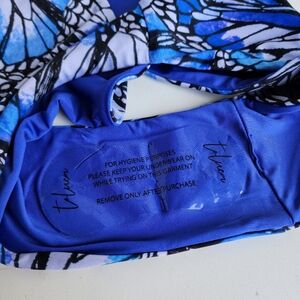 NWT Toluca Swim 2 Pc Angelica Blue Butterfly Bikini Top Bottoms High Waist Sz S
