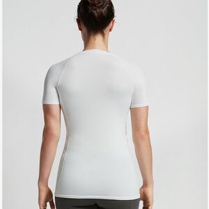 Our Women's performance compression short sleeve crew is designed in our 4D lightweight, lycra fiber stretch fabric and flatlock seam construction for a comfortable fit, aiding in muscle recovery and relief. Engineered with our patented copper Znergy technology provides premium benefits that last the lifetime of the garment and won't wash out, while UPF 50+ protects from the sun's harmful rays. The raglan seam lines provide extra support for better range of motion. Our breathable, moisture wicking fabric helps to maintain body temperature to keep you cool and dry. Whether for work or play, it's the perfect short sleeve compression top. You'll want to wear your wellness again and again