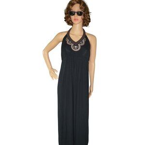 NWT Tommy Bahama Beaded Halter Boho Maxi Dress Black Brown Women's Size Large