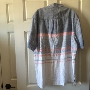 The Tommy Bahama Oceana Stripe Button-up will have you feeling the waves of summer with the comfortable pull-on design, fold-over collar with front button-up placket, front chest patch pocket, and straight hemline with side slits.