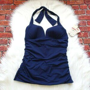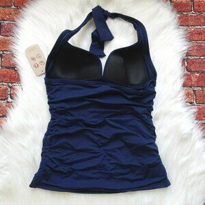 NWT Tommy Bahama Pearl Halter Tankini Swim Top Shirred Mare Navy Stretch